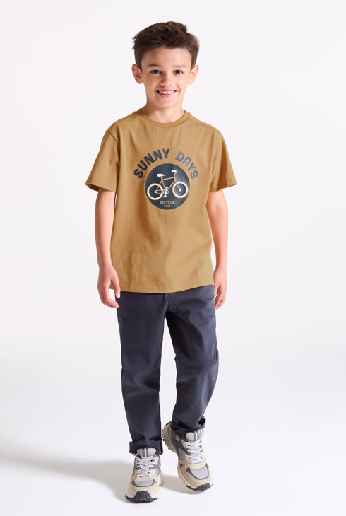 Smeđa majica kratkih rukava s motivom bicikla za dječake