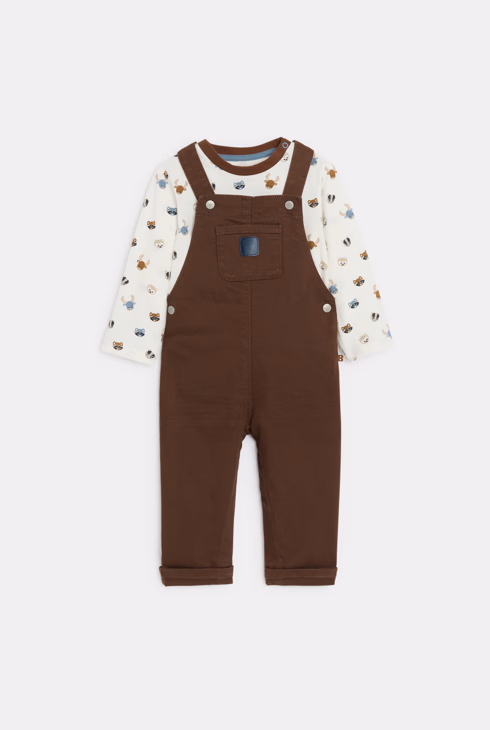 Smeđi kratki kombinezon i majica za dječake