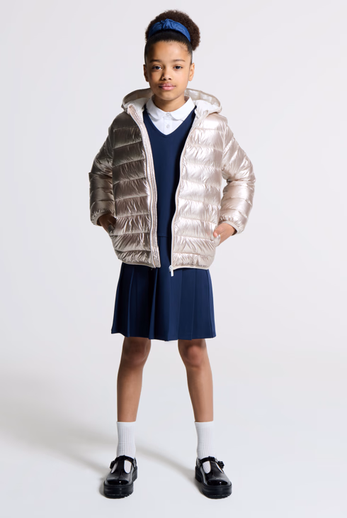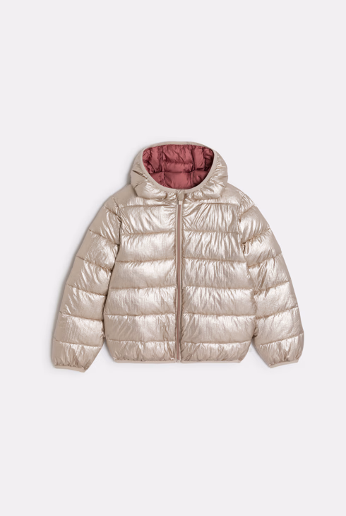 Svjetlucava zlatna pernata jakna s kapuljačom za djevojčice