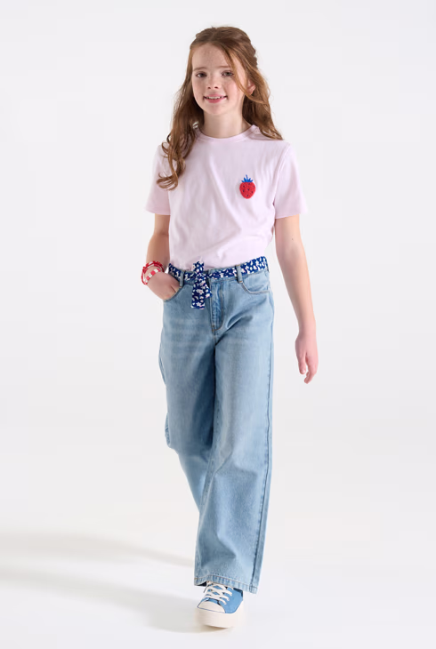 Traperice širokih nogavica s remenom od plavog trapera za djevojčice