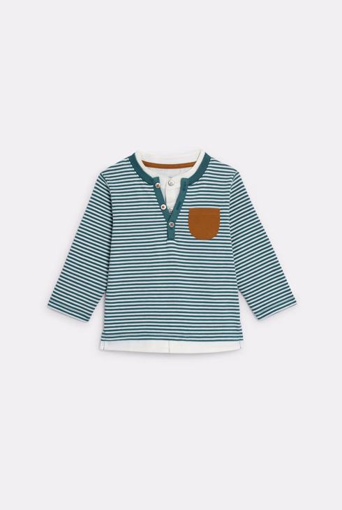 Zelena prugasta majica s tuniskim ovratnikom za bebe dječake