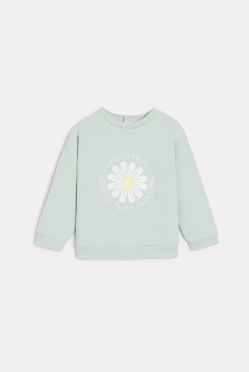 Zeleni pulover od flisa s motivom cvijeta za djevojčice