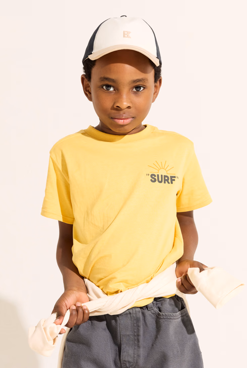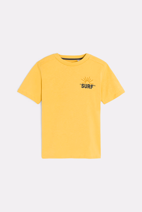 Žuta majica kratkih rukava s porukom sprijeda i na leđima za dječake