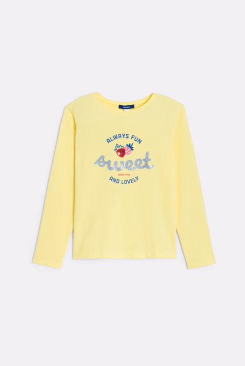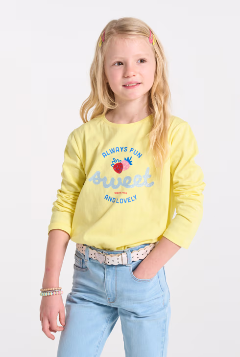 Žuta majica kratkih rukava sa šljokičastom porukom za djevojčice