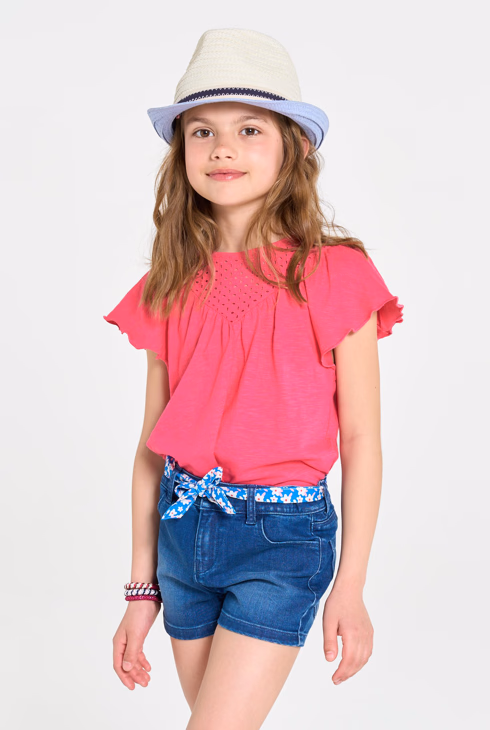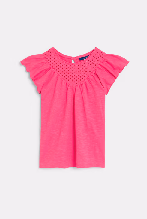 Žuta majica kratkih rukava za djevojčice s engleskim vezom