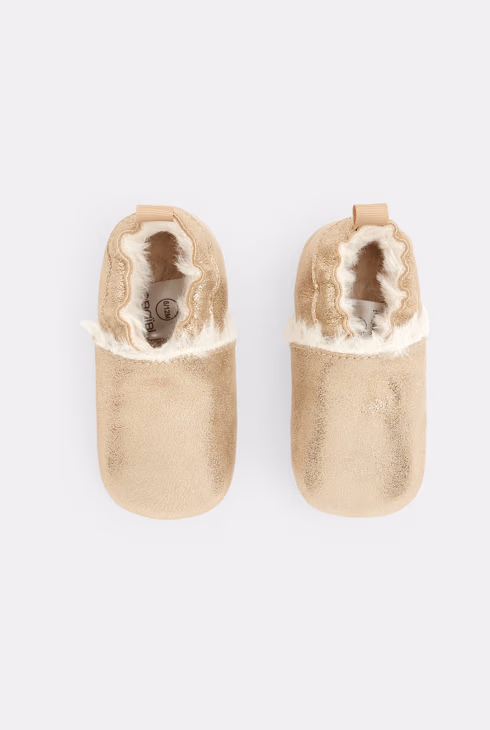 Žute meke kožne papuče za novorođenčad podstavljene krznom