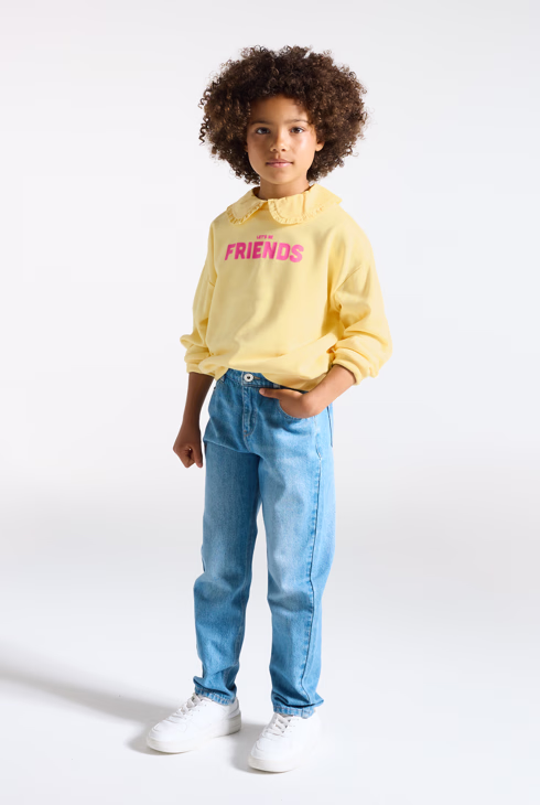 Žuti pulover s odvojivim Petar Pan ovratnikom za djevojčice