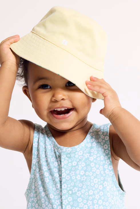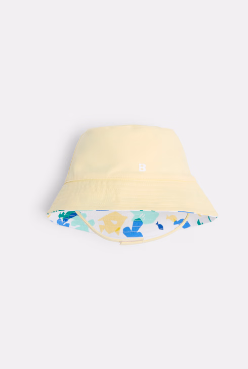Žuti šešir za sunce za dječake nosiv s obje strane s motivom riba